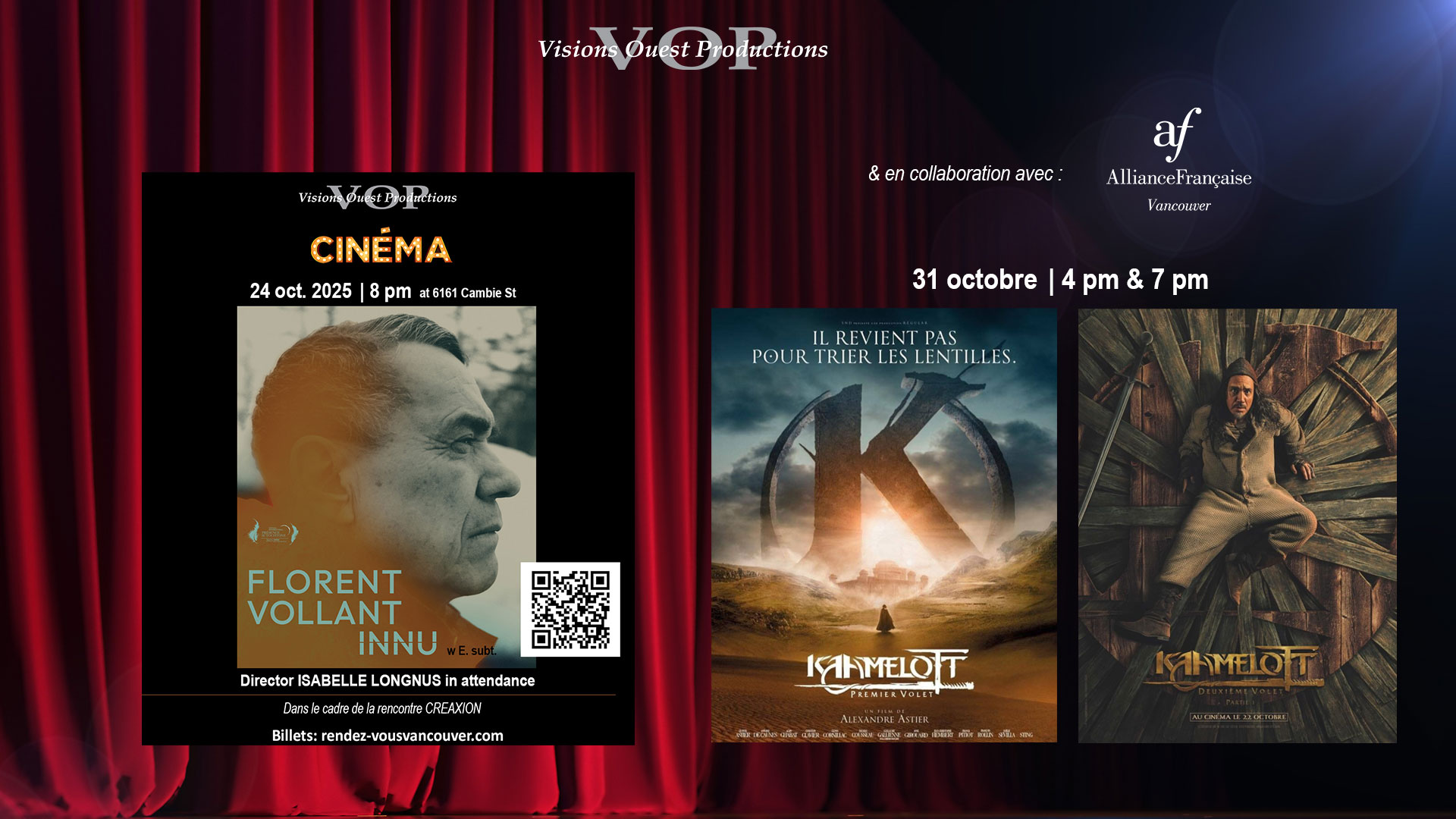 Une programmation au 6161 Cambie, co-présentée par Visions Ouest Productions et l’Alliance Française Vancouver / Visions Ouest Productions and l’Alliance Française Vancouver present a new series of recent films, in French with English subtitles.