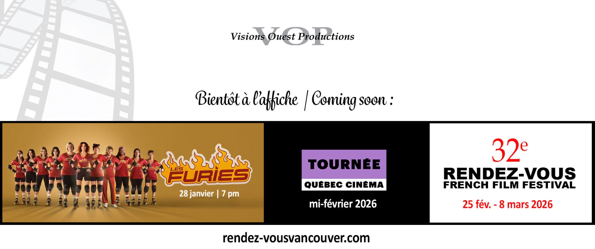 Visions Ouest Productions, en co-présentation avec l’Alliance française Vancouver, offre une sélection des meilleurs films québécois et francophones récents et sous-titrés.